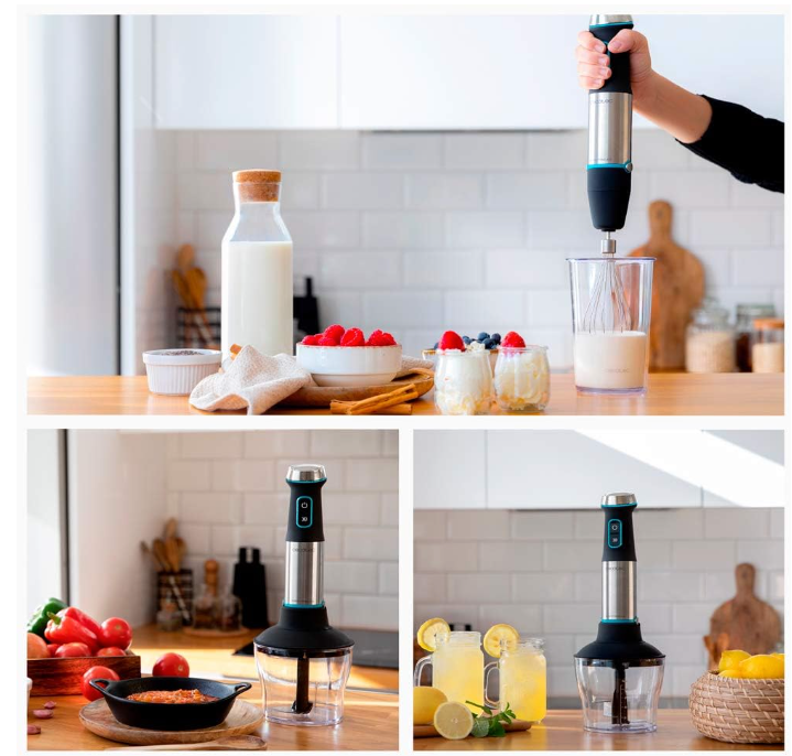 Llevamos las manzanas al vaso de la batidora y añadimos la leche.